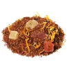 Ingrédients : Rooibos Super Grade, ananas (ananas, sucre), raisin (raisin, huile végétale), papaye (papaye, sucre), arôme, fleurs de souci, vanille.