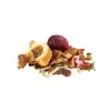 Ingrédients : Pomme, citronnelle, ananas (ananas, sucre), Flamants roses en sucre (sucre, farine de riz, huiles et graisses végétales (colza), fécule de pomme de terre, concentré de jus de betterave, arôme), baie de goji, morceaux d’orange, hibiscus, arôme, betterave rouge, canneberge, fraise, Menthe à la pomme.